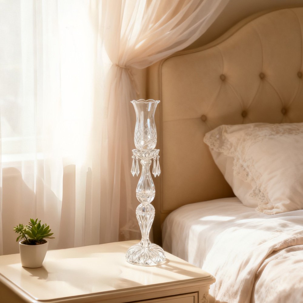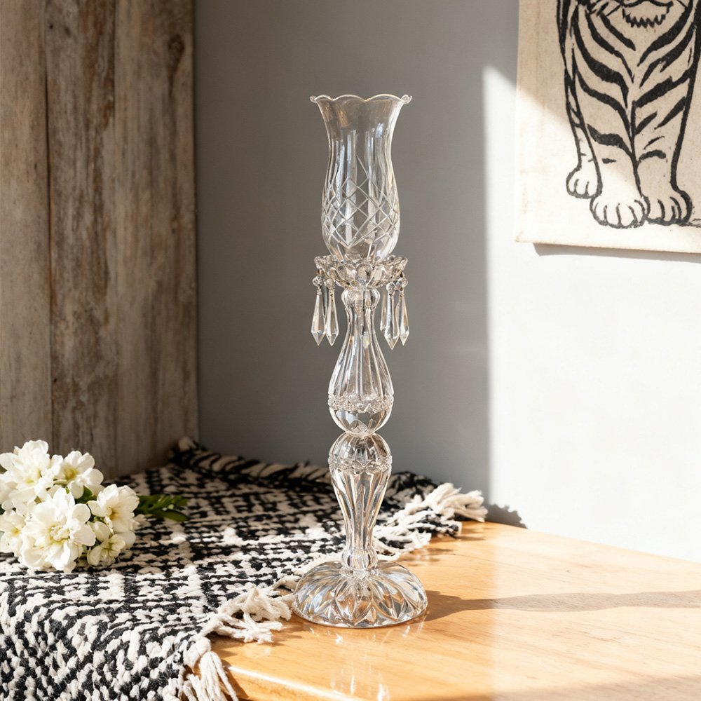 Illuminate with style using our Clear Crystal Candle Holder—elegant and timeless, it adds a touch of refined sparkle to any space.