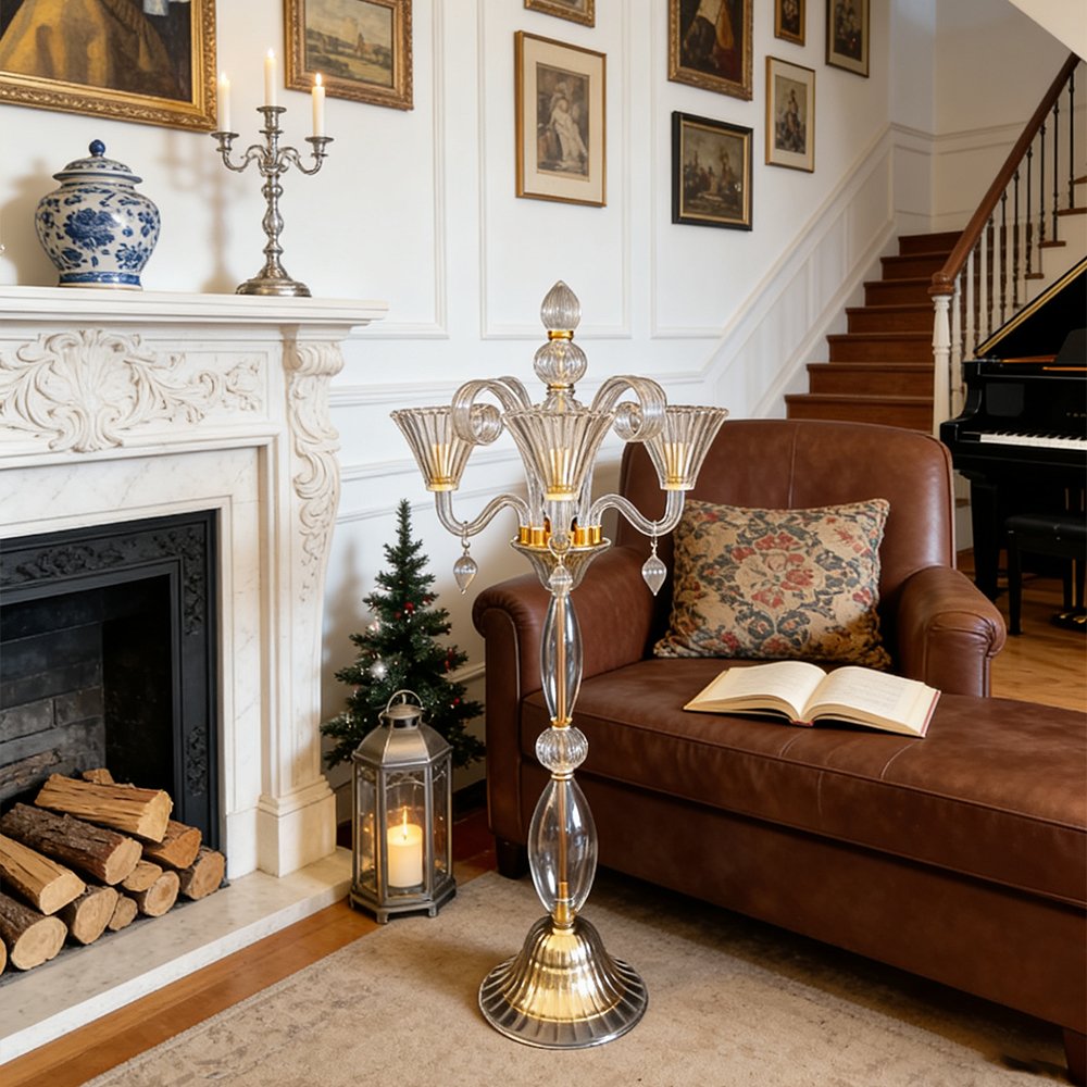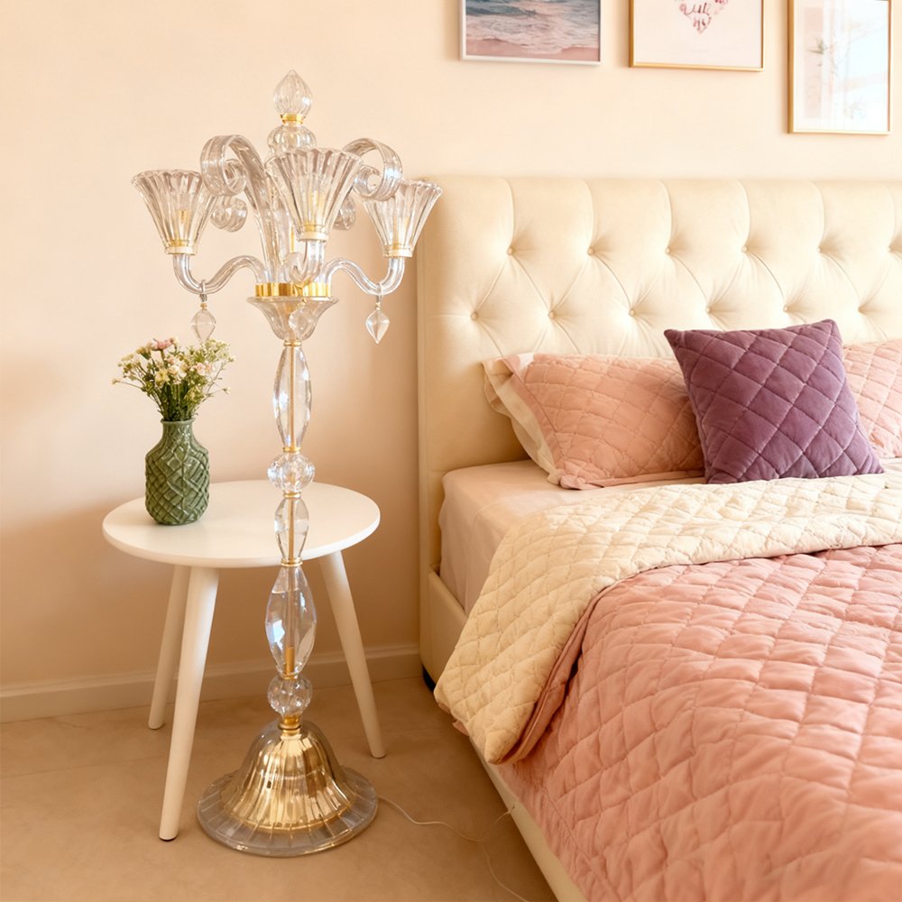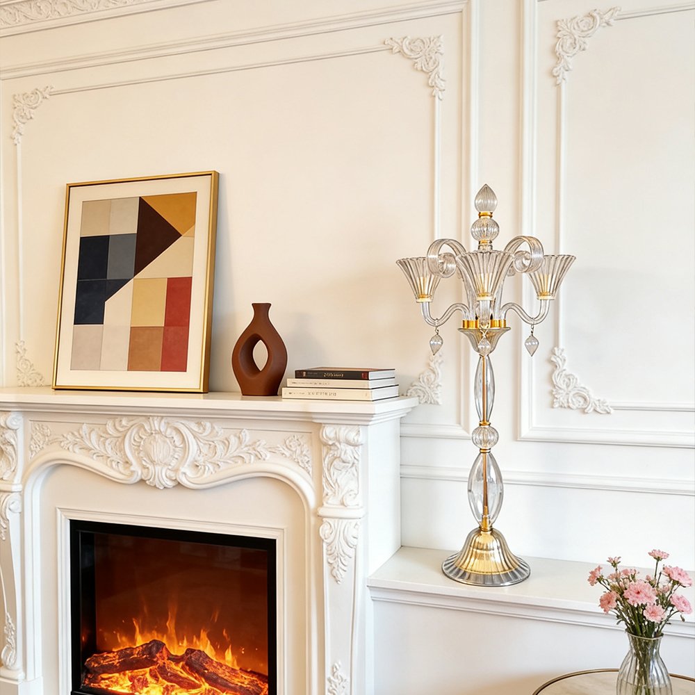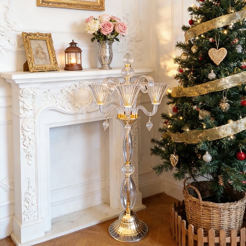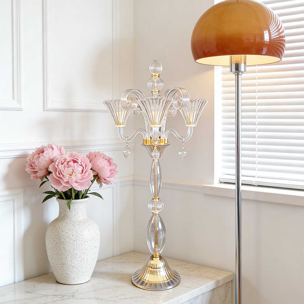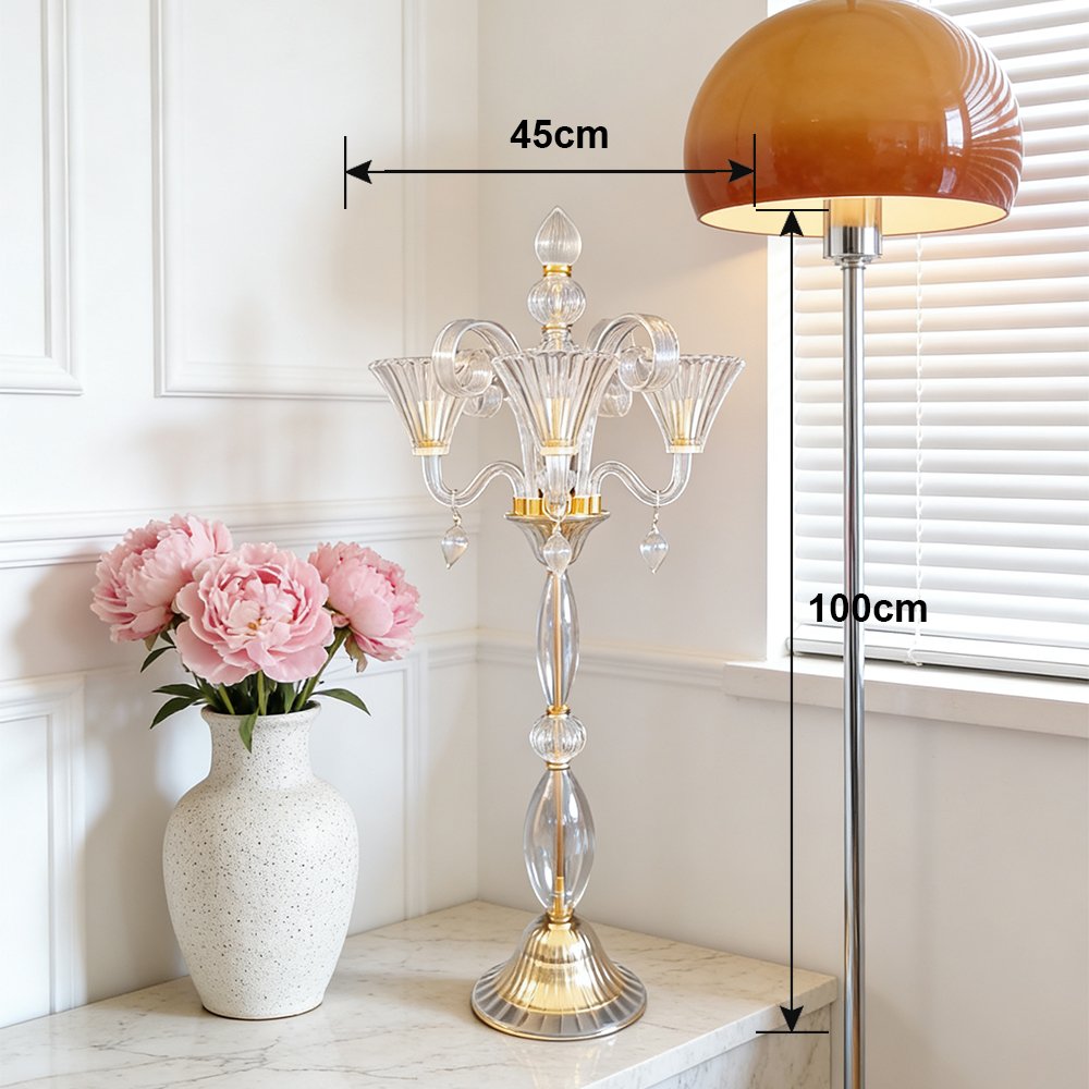 Elevate your space with this stunning 5-arm crystal candelabra. Featuring a polished gold finish and intricate crystal accents, it casts a warm, glamorous glow—perfect for weddings, dinner parties, or as a sophisticated centerpiece. Crafted for durability and timeless style, it effortlessly blends luxury and functionality, adding a touch of elegance to any room.