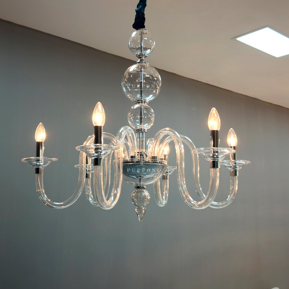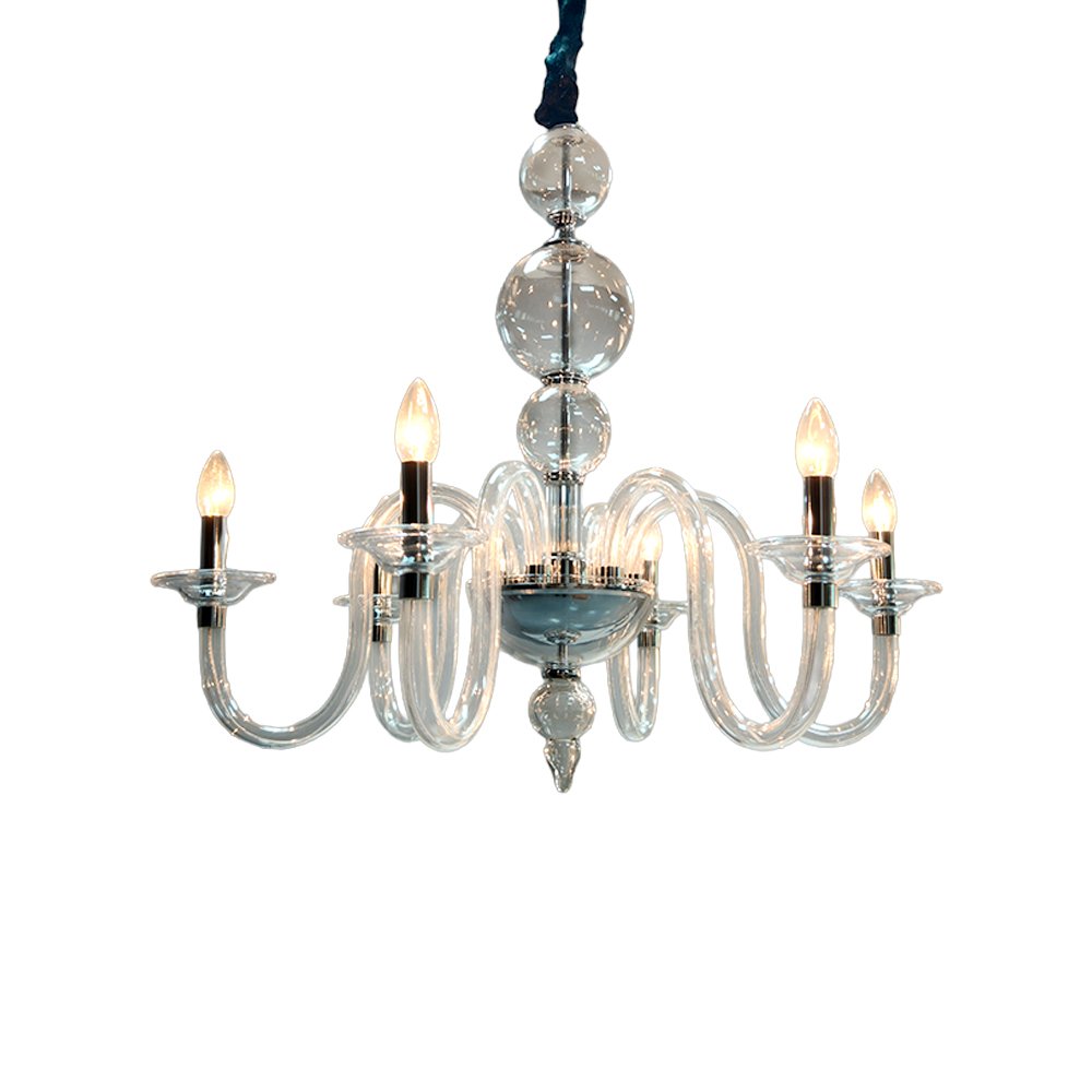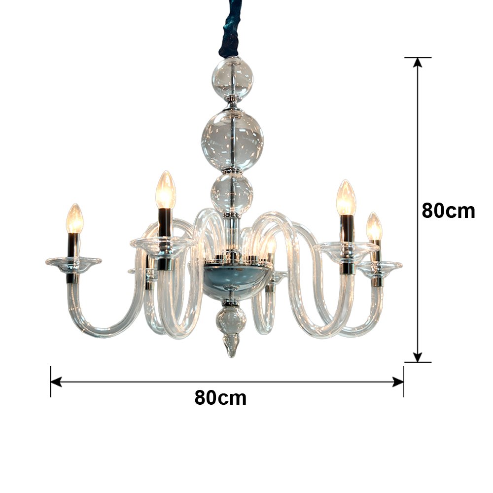 Elevate your space with this stunning glass bubble chandelier. Crafted from clear curved glass with polished chrome accents, it features candle-style lights for a warm, timeless glow. Perfect for living rooms, dining areas, or bedrooms, it blends classic charm with modern elegance to elevate any interior.