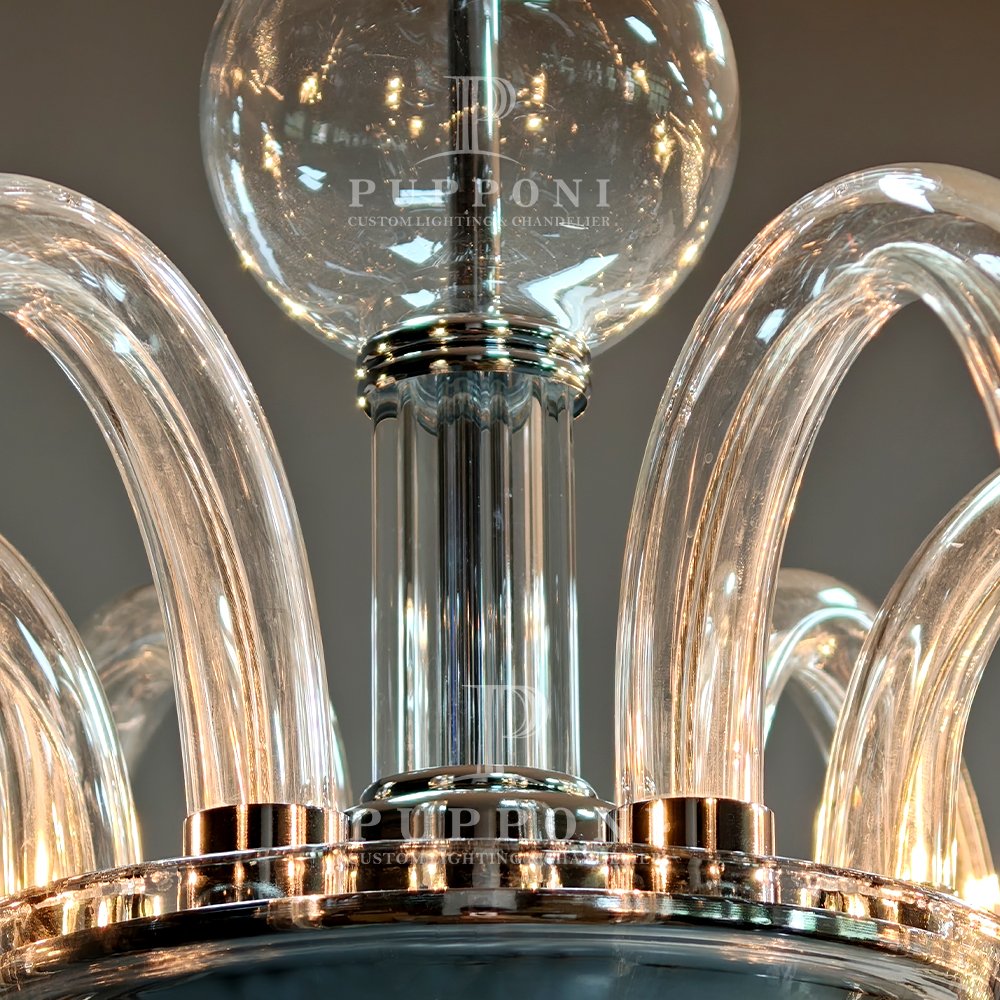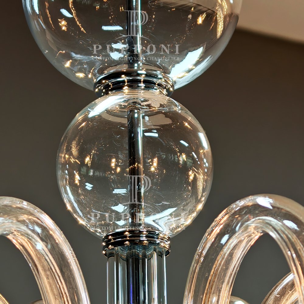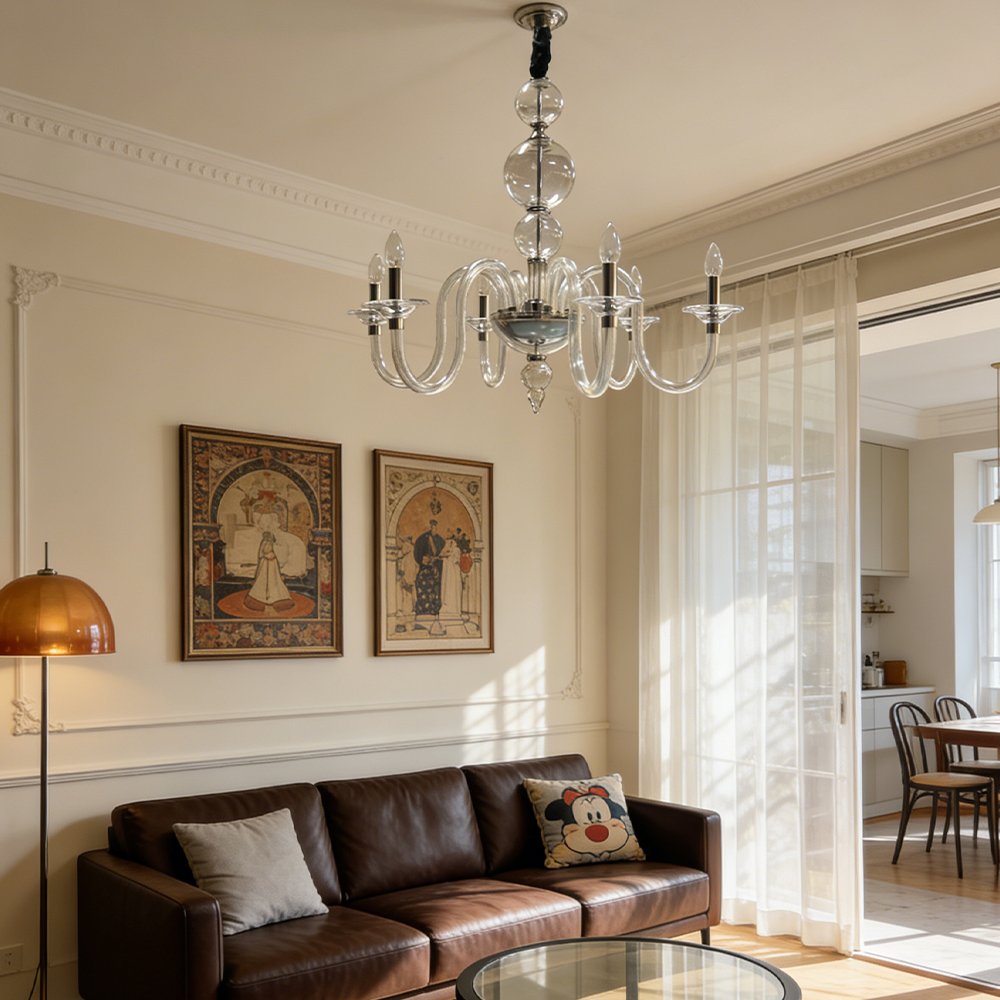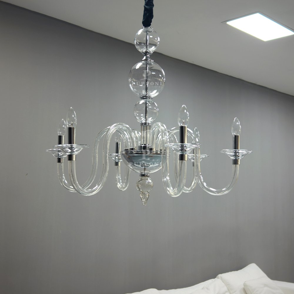 Elevate your space with this stunning glass bubble chandelier. Crafted from clear curved glass with polished chrome accents, it features candle-style lights for a warm, timeless glow. Perfect for living rooms, dining areas, or bedrooms, it blends classic charm with modern elegance to elevate any interior.