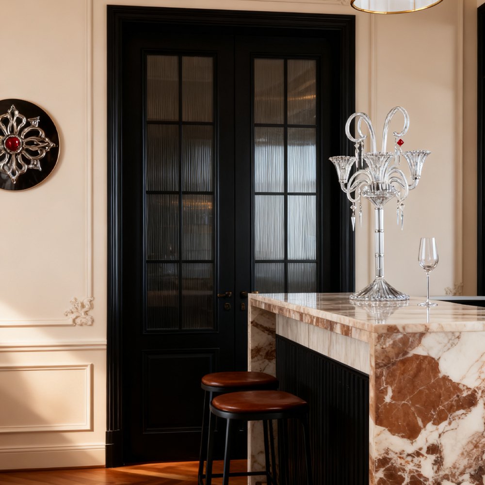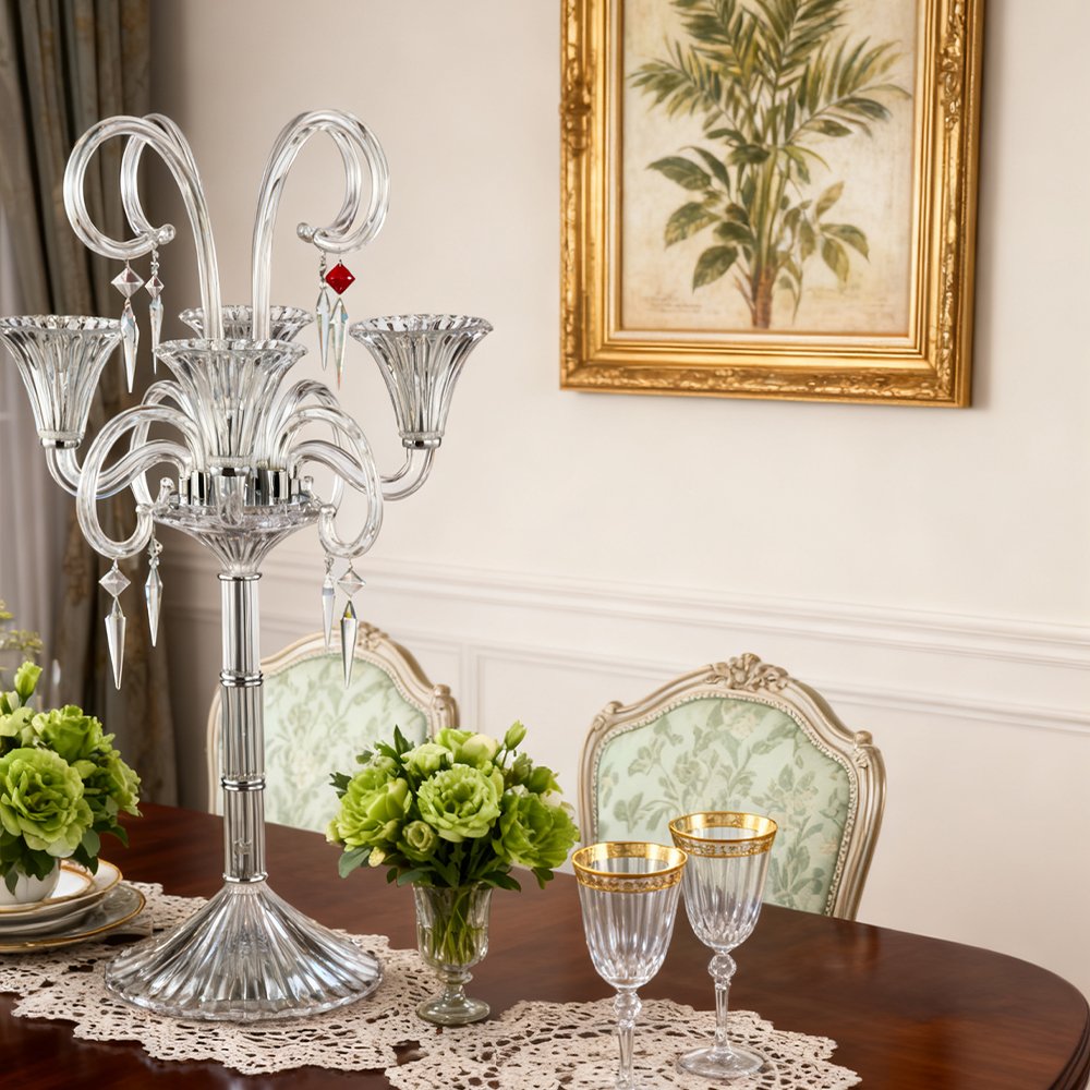 French Crystal Candelabra adds elegance to dinners, blending French romance with crystal’s delicate shimmer.