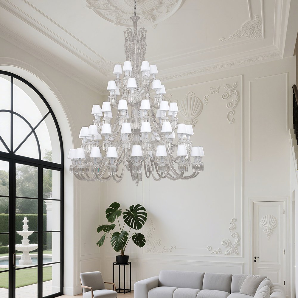 Elegant French crystal chandelier adds timeless charm and sparkling brilliance, perfect for luxury living rooms and wedding decorations.