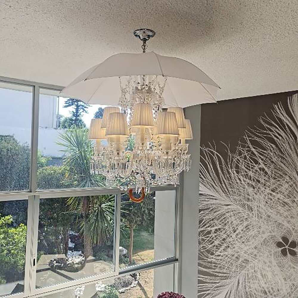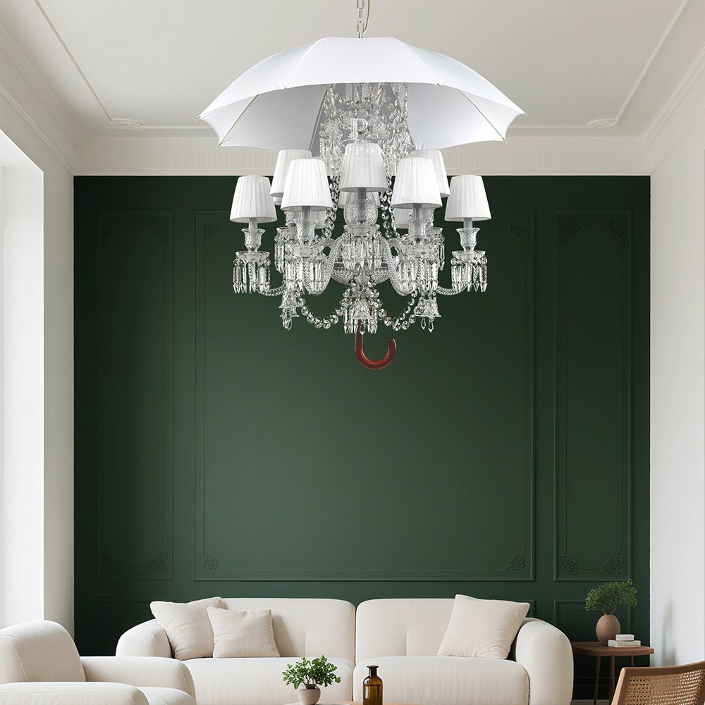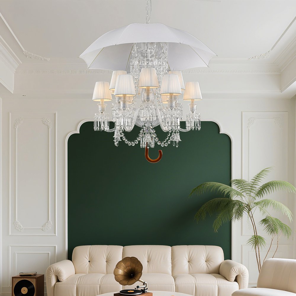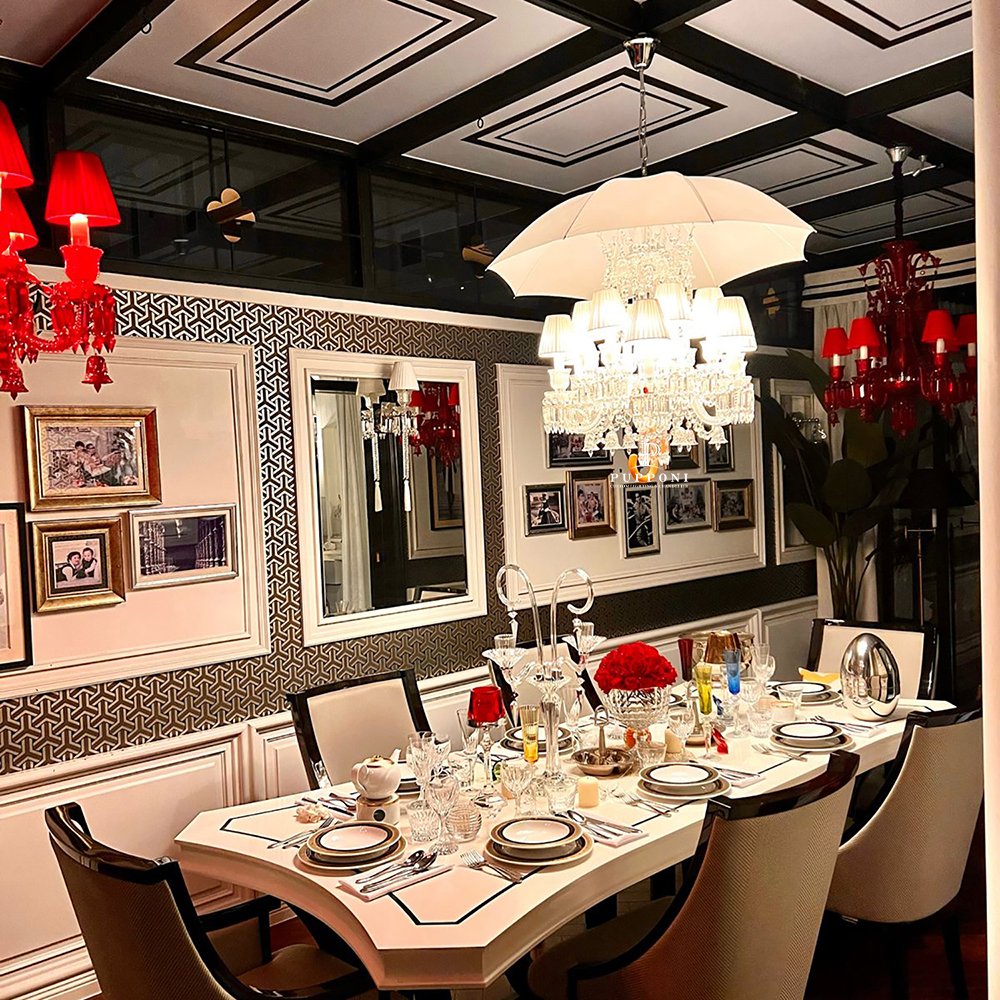 French dining chandelier with crystal accents adds elegance and creates a romantic dining atmosphere.