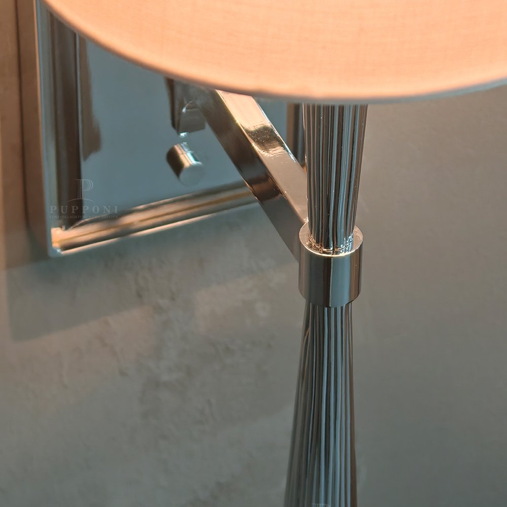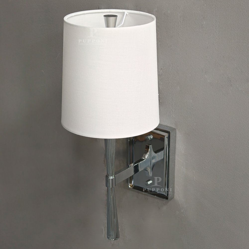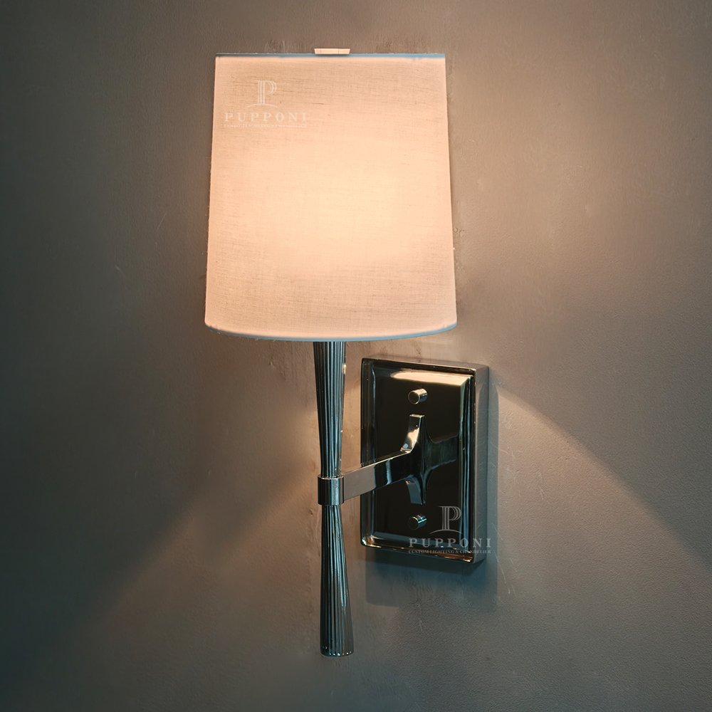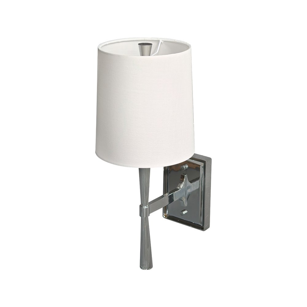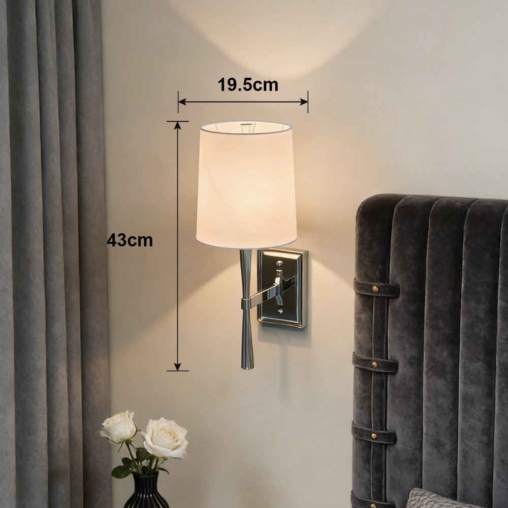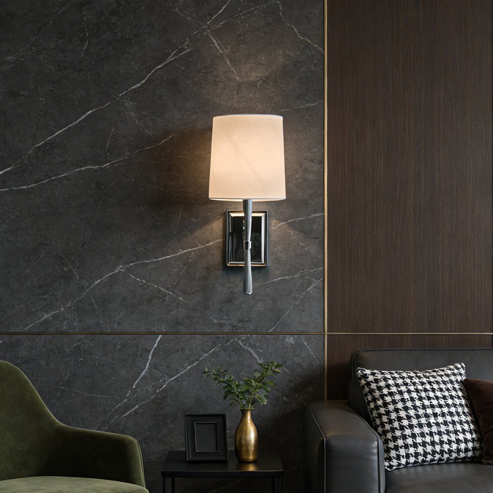 Upgrade your space with this sleek modern wall sconce. Featuring a polished chrome finish, ribbed metal arm, and soft linen shade, it delivers warm, diffused lighting perfect for bedrooms, living rooms, or hallways. Its minimalist design blends seamlessly with contemporary and mid-century interiors, adding functional elegance and timeless style to any room.