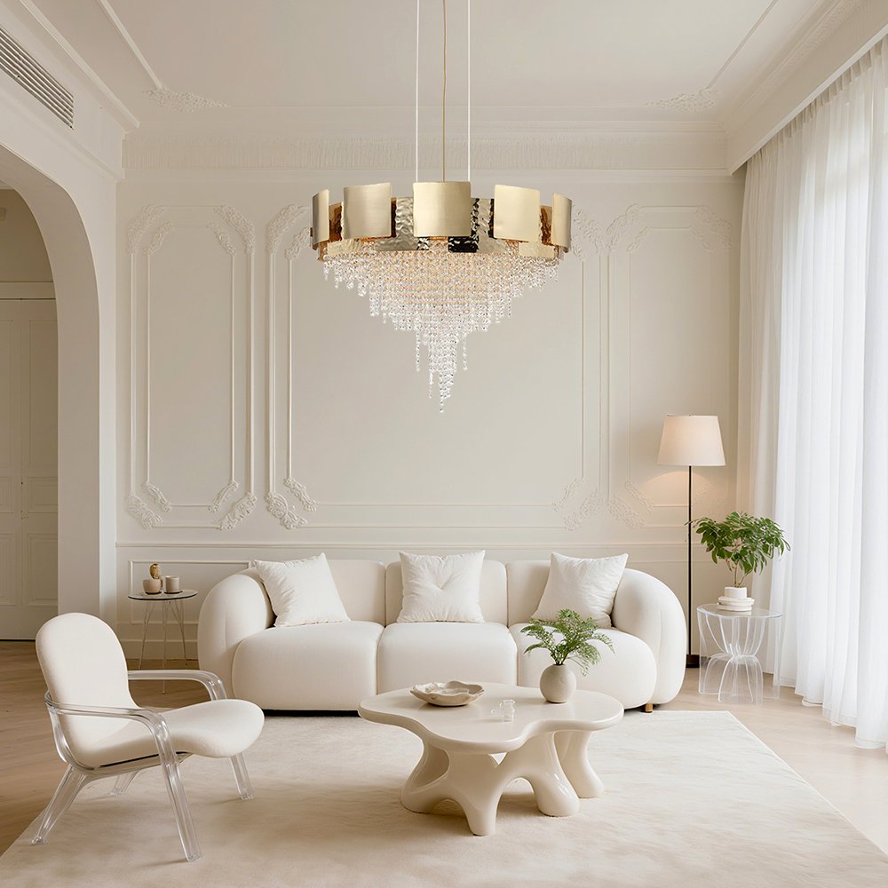 Elevate your space with this luxurious stainless steel crystal chandelier. Perfect for restaurants, villas, and upscale homes, it combines durability with brilliance for a stunning lighting centerpiece. Ideal for modern indoor decoration and commercial interiors.