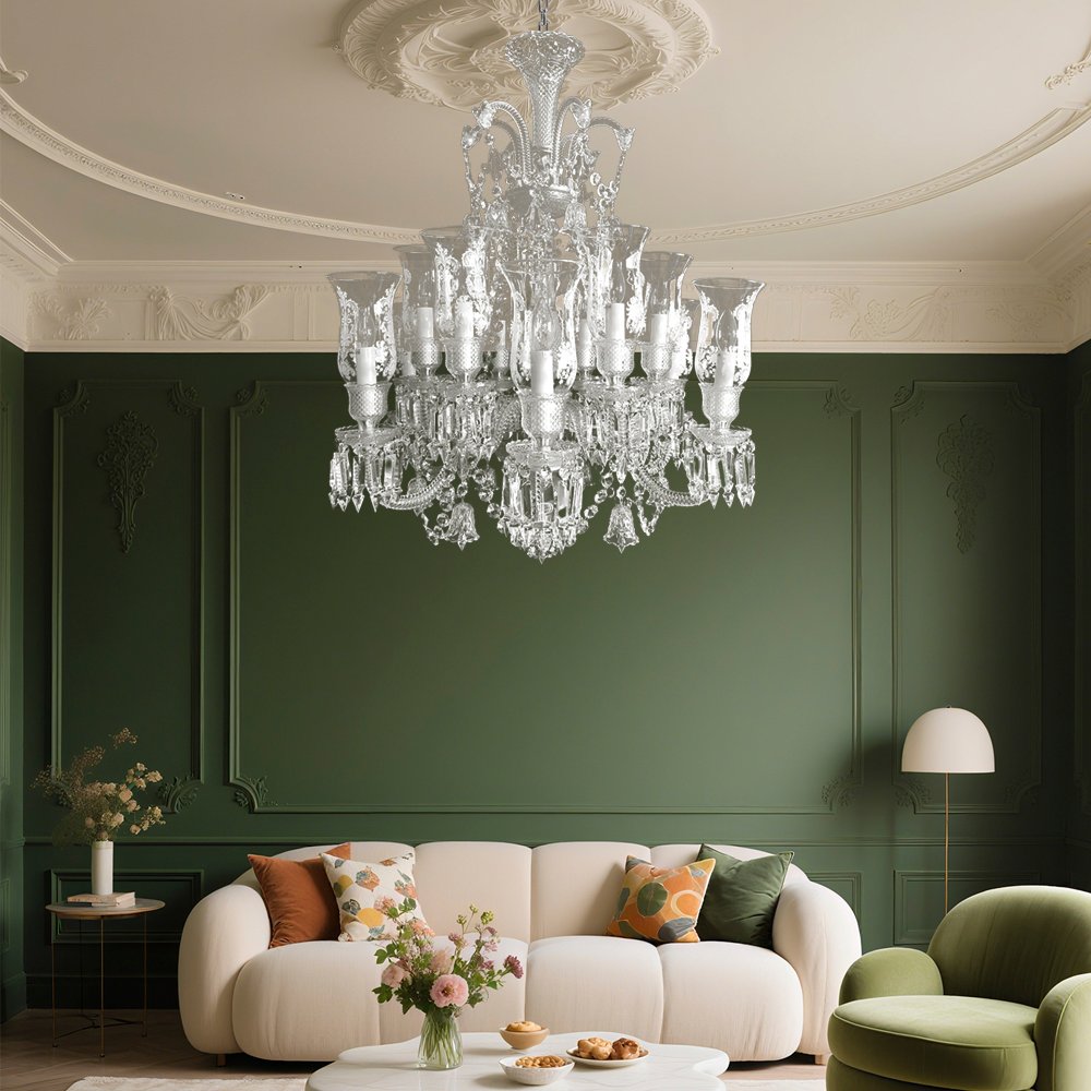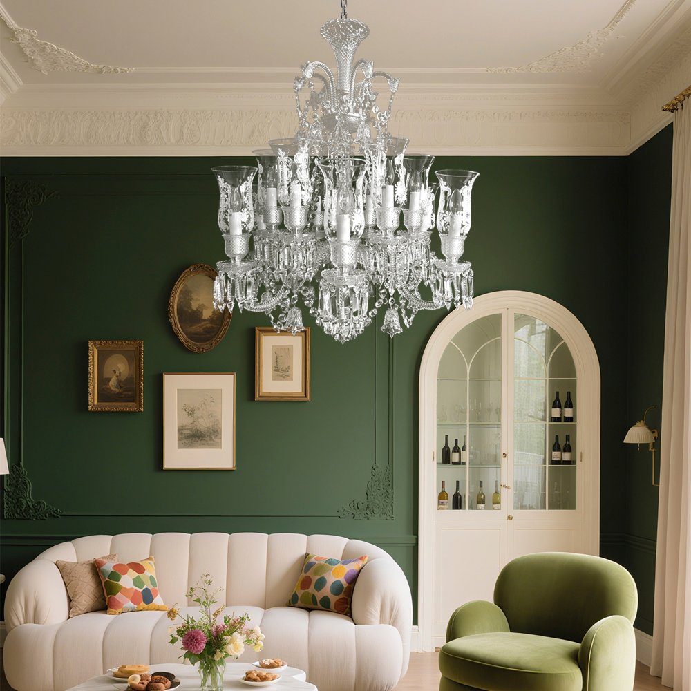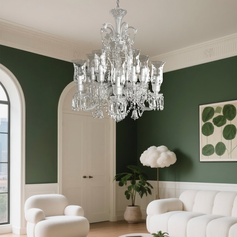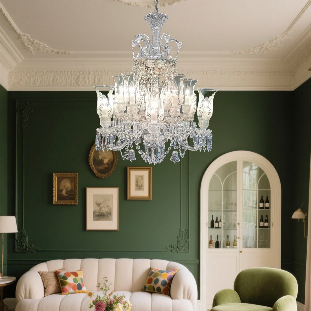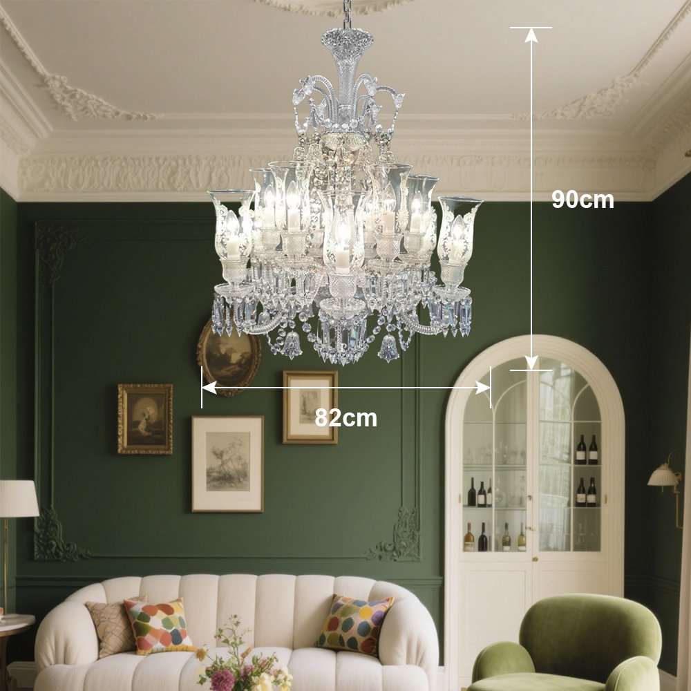 Featuring a vintage-inspired design, this French Crystal Chandelier offers a blend of old-world charm and modern elegance, ideal for creating a luxurious atmosphere.